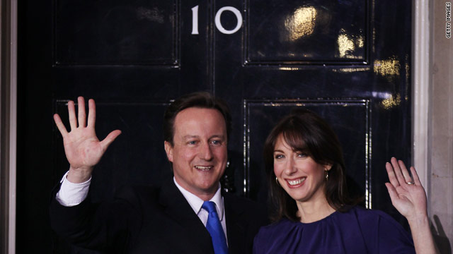 Prime Minister David Cameron and his wife Samantha wave from the steps of 10 Downing Street on TuesdayLondon, England (CNN) -- Conservative Party leader David Cameron was appointed as British prime minister on Tuesday following the resignation of Gordon Brown, whose Labour Party was defeated in Thursday's general election.